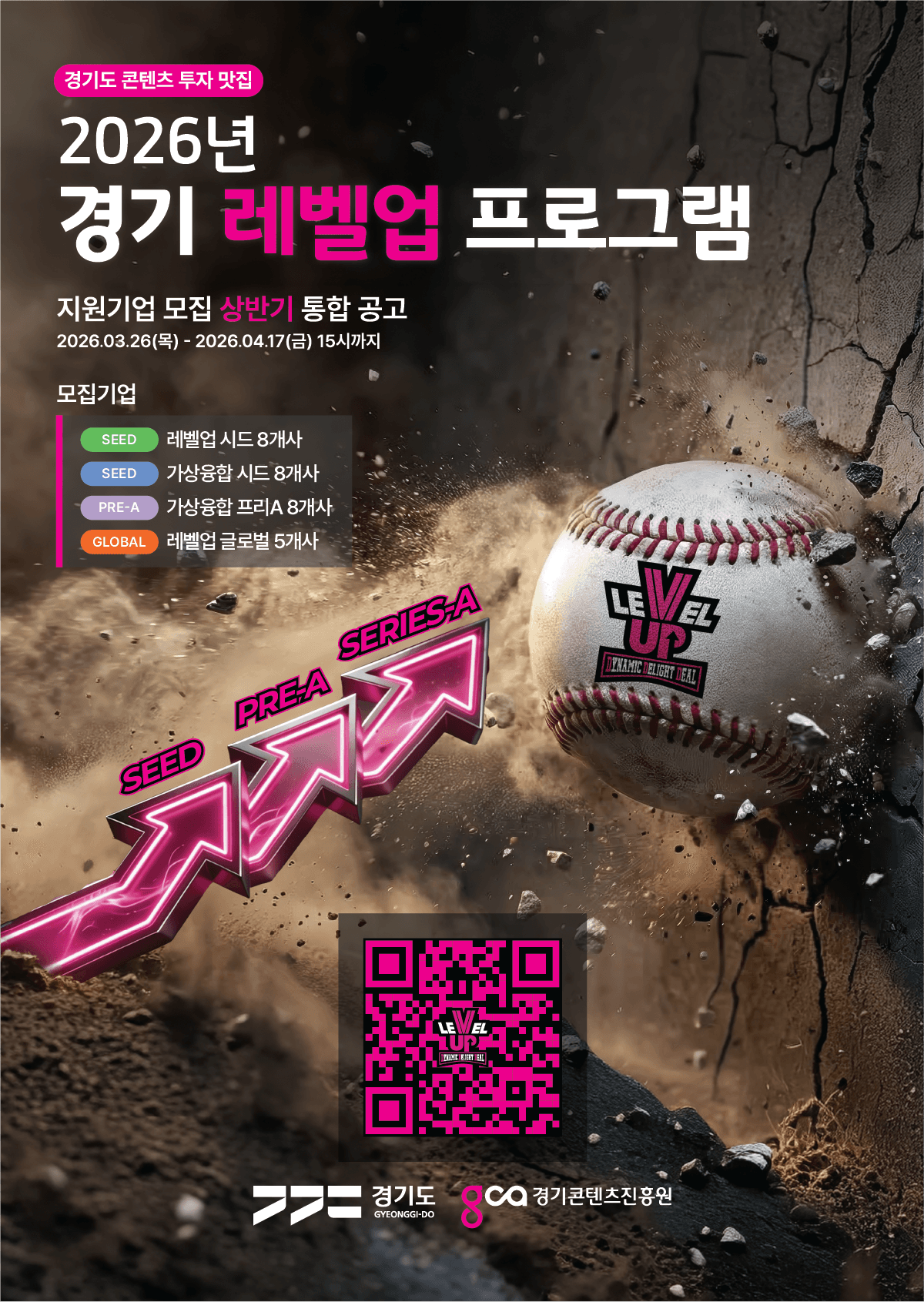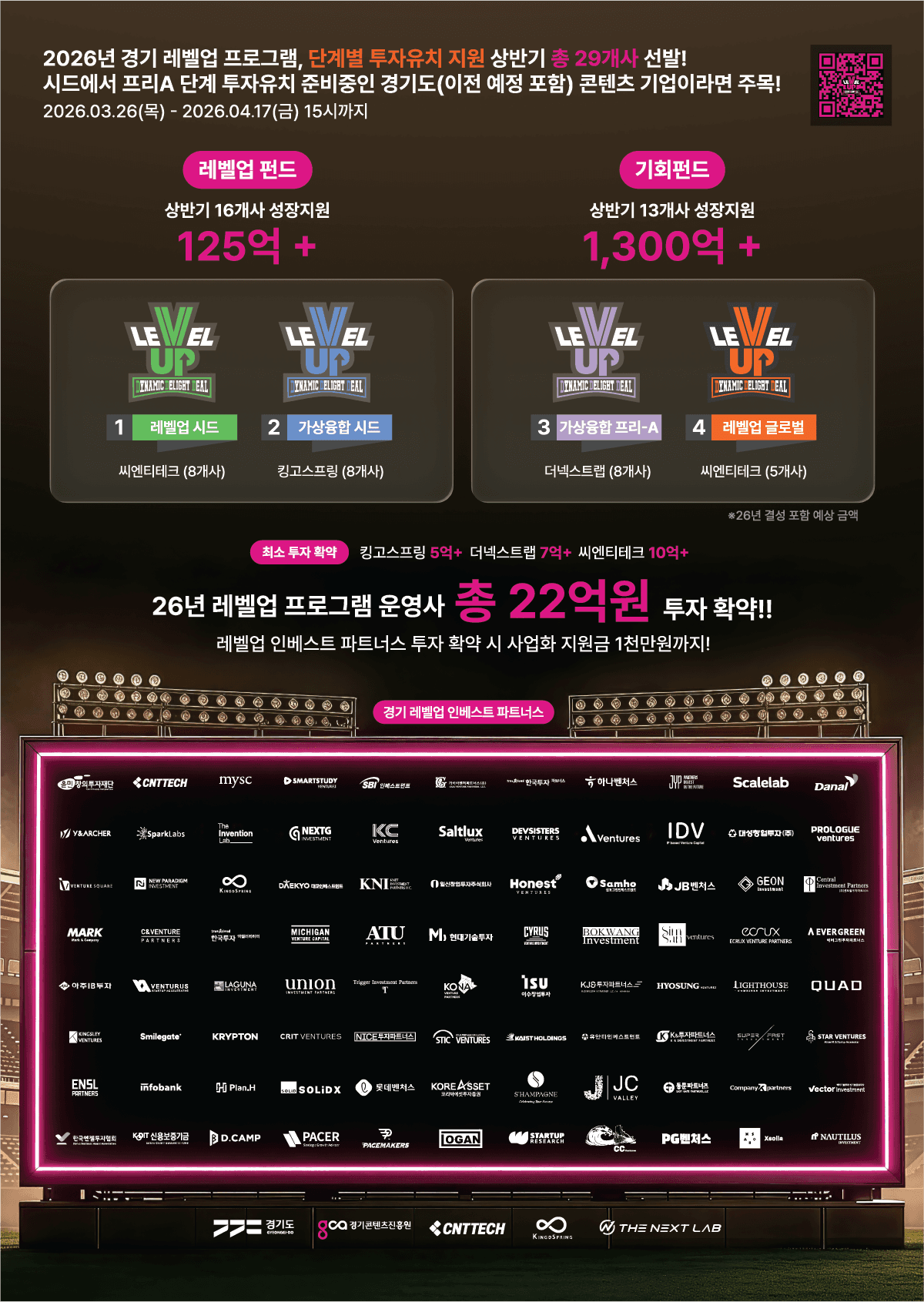 민간 전문 투자사와 펀드를 조성하고, 기업의 단계별 성장지원을 돕기 위해 「2026년 경기 레벨업 프로그램」을 모집하오니 많은 관심 부탁드립니다.