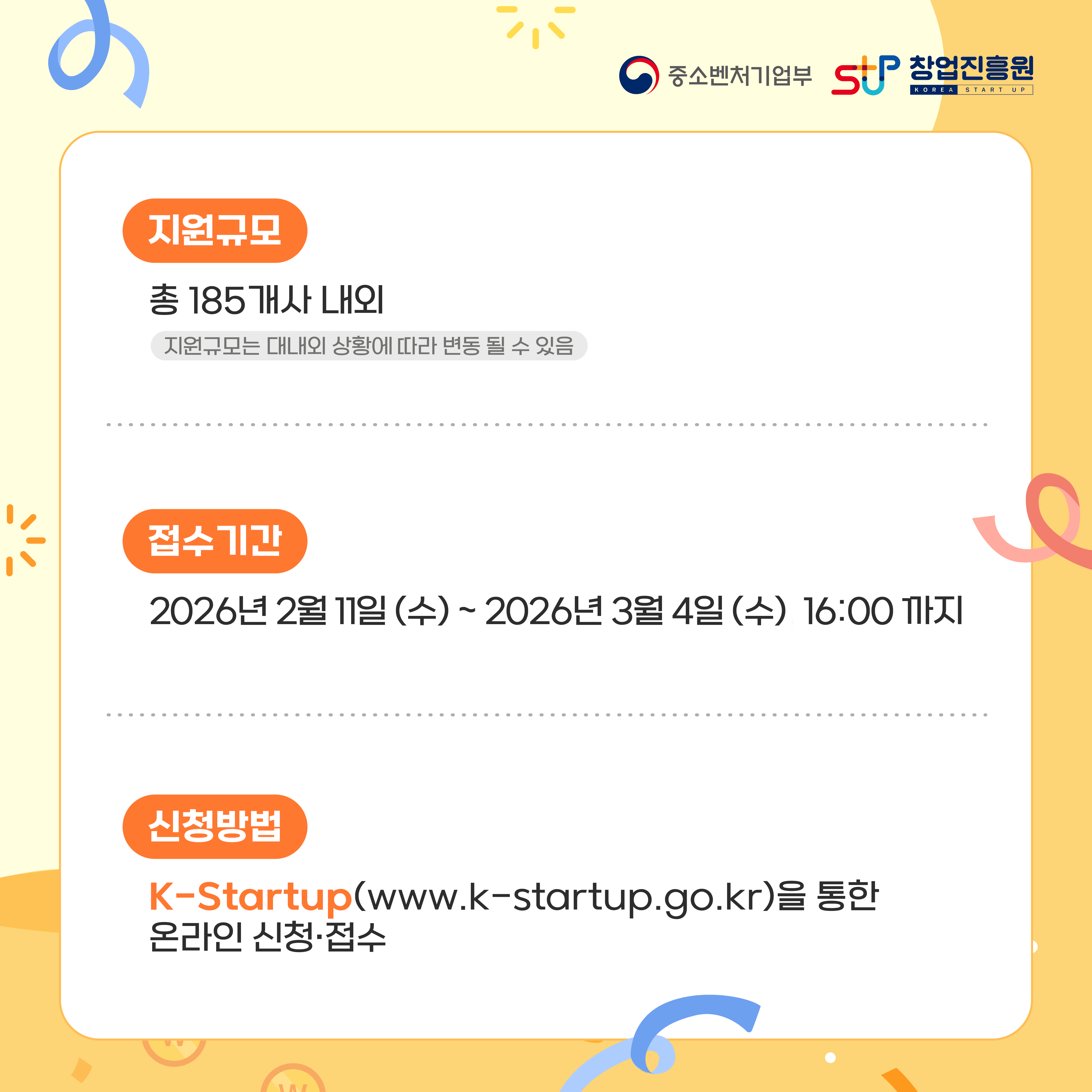 지원규모 : 총 185개사 내외