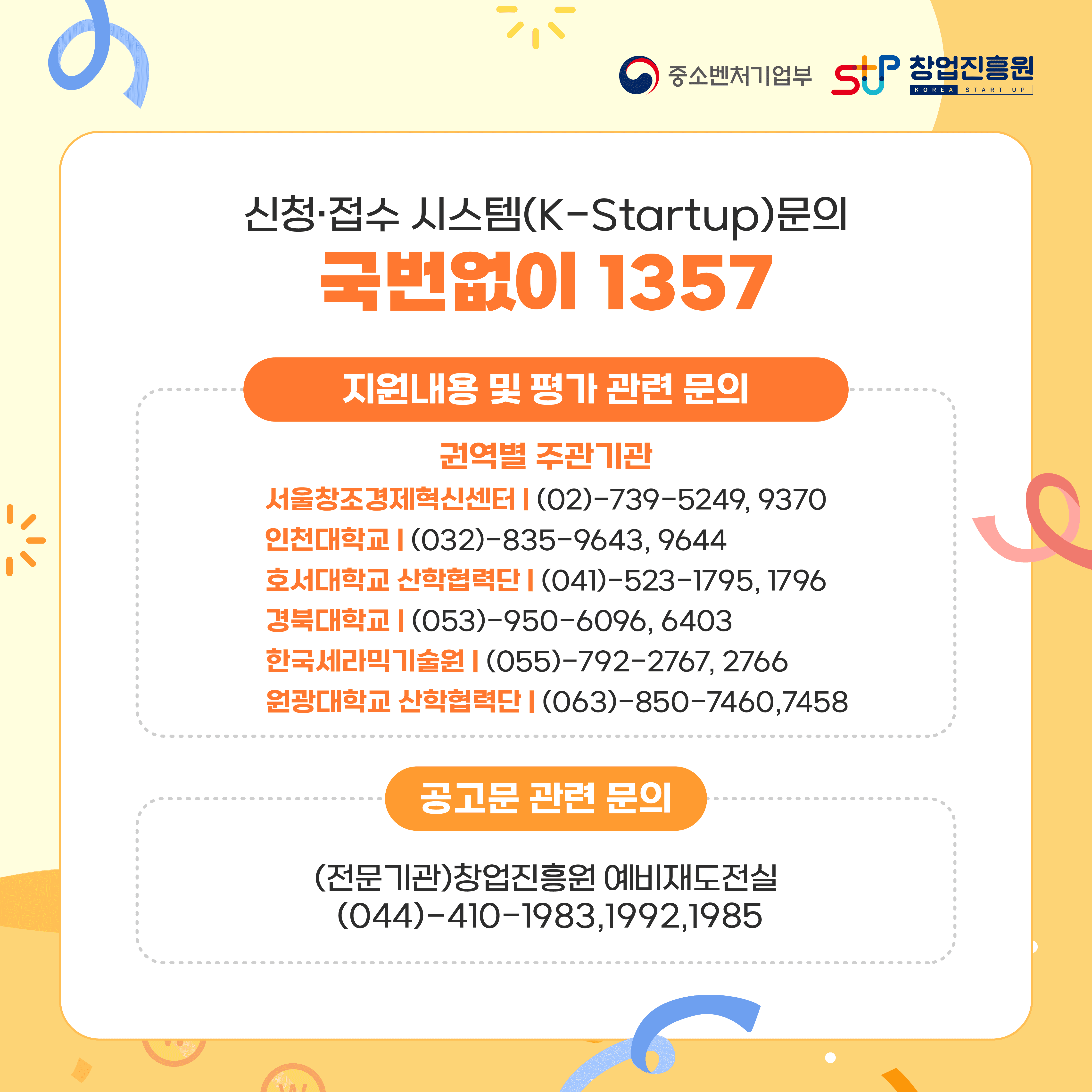 문의 : 신청·접수 시스템(K-Startup) 1357